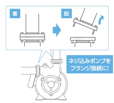 ねじ込み式のポンプをフランジ接続に変更できるジョイント金具です。 着脱が容易になるので、装置内のメンテナンス性が向上!